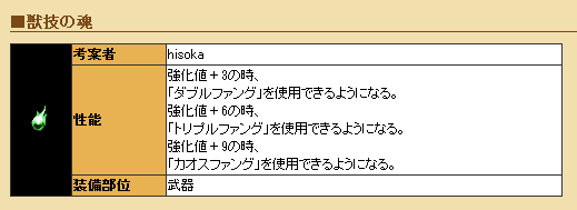 それは、強化値+3の時、「ダブルファング」を使用できるようになる。