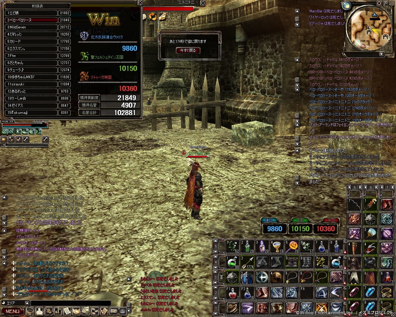 自陣が結構やられてたので殴り甲斐がありましたね。すばらっ